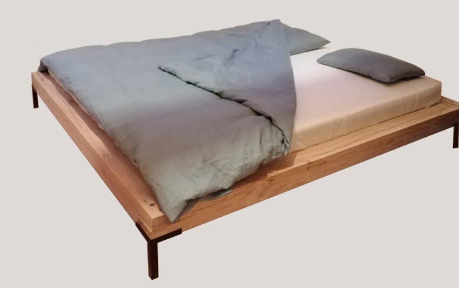 Bed gemaakt van balken verbonden middels een halfhoutverbinding.