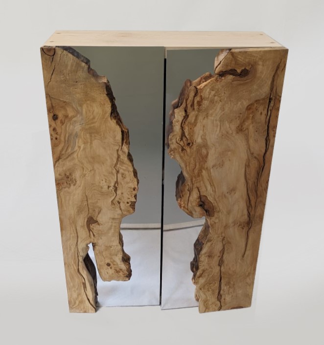 Esdoorn en lindehout (burl), plexiglas spiegel