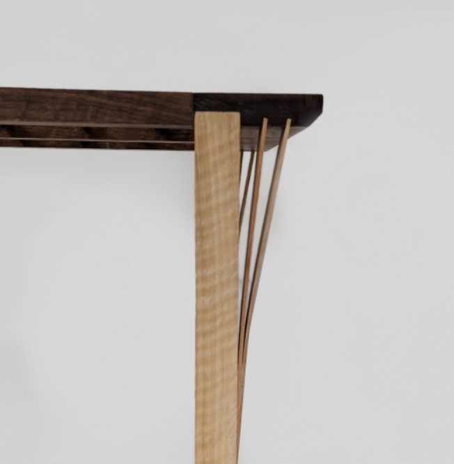 Het hout van de poten heeft een zeldzame golvende draad (dit wordt ook moiré of quilted in het Engels genoemd).